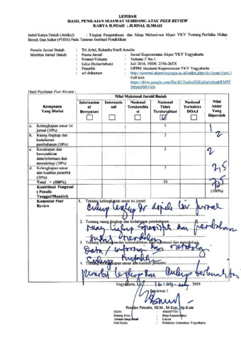 Arini, Tri PEER REVIEW KARYA ILMIAH : TINGKAT PENGETAHUAN DAN SIKAP MAHASISWA AKPER YKY TENTANG PERILAKU HIDUP SEHAT (PHBS) PADA TATAN INSTITUSI PENDIDIKAN. PEER REVIEW KARYA ILMIAH : TINGKAT PENGETAHUAN DAN SIKAP MAHASISWA AKPER YKY TENTANG PERILAKU HIDUP SEHAT (PHBS) PADA TATAN INSTITUSI PENDIDIKAN.