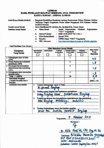 MPP, Dewi and Diana, Venny PEER REVIEW PENGARUH PENDIDIKAN KESEHATAN TENTANG PERENCANAAN MAKAN DIABETES MELITUS TERHADAP TINGKAT KEPATUHAN PASIEN DALAM PENGATURAN DIET DIABETES MELITUS DI RSUD SLEMAN. PEER REVIEW PENGARUH PENDIDIKAN KESEHATAN TENTANG PERENCANAAN MAKAN DIABETES MELITUS TERHADAP TINGKAT KEPATUHAN PASIEN DALAM PENGATURAN DIET DIABETES MELITUS DI RSUD SLEMAN.