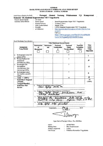 Arini, Tri PEER REVIEW PERSEPSI ALUMNI TENTANG PELAKSANAAN UJI KOMPETENSI DI AKADEMI KEPERAWATAN YKY YOGYAKARTA. JURNAL KEPERAWATAN. ISSN 2356-265X