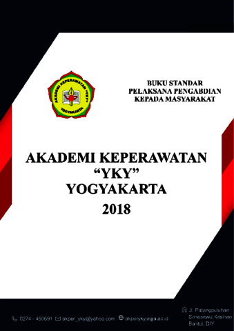 Akper YKY, Yogyakarta (2019) Buku Standar Pelaksana Pengabdian Kepada Masyarakat Tahun 2018. AKADEMI KEPERAWATAN YKY YOGYAKARTA.