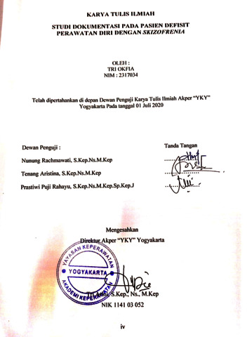 Okfia, Tri (2020) STUDI DOKUMENTASI PADA PASIEN DEFISIT PERAWATAN DIRI DENGAN SKIZOFRENIA. Akademi Keperawatan YKY Yogyakarta. (Submitted)