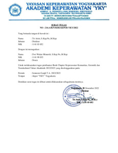 BOOK CHAPTER KEPERAWATAN KOMUNITAS GERONTIK DAN TRANSKULTURAL DWI WULAN.pdf Download (1MB) | Preview |