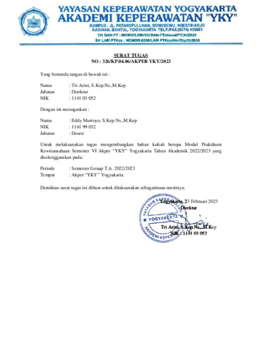 Murtoyo, Eddy Dokumen Pengajaran Modul Kewirausahaan Eddy Murtoyo Genap 2022 / 2023. Akademi Keperawatan YKY Yogyakarta.