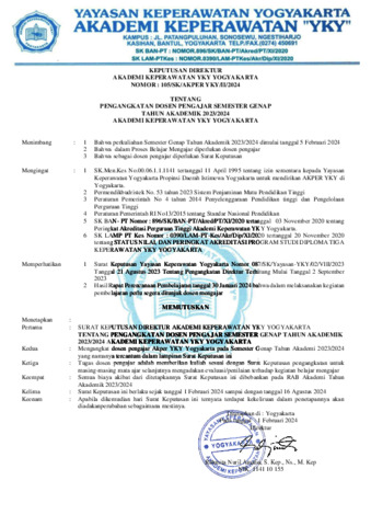 Kusumanintyas, Dewi Dokumen Pengajaran MK Farmakologi Semester 2 TA 2023-2024. Akademi Keperawatan YKY Yogyakarta.